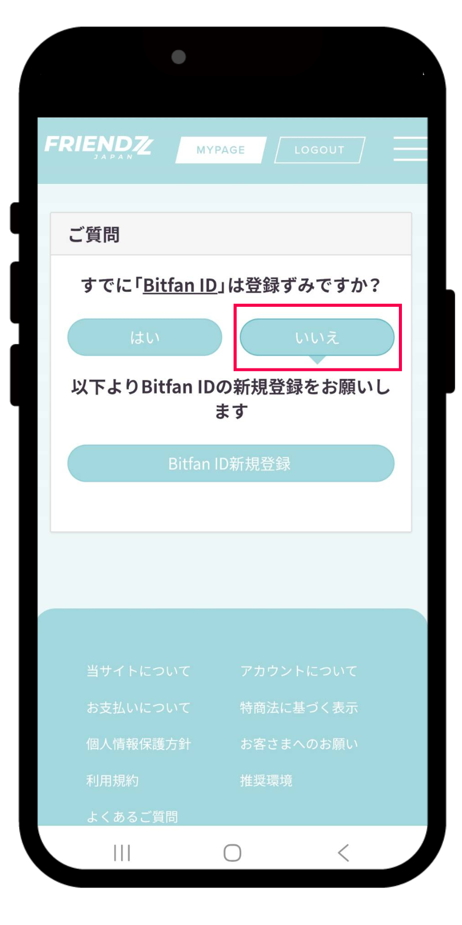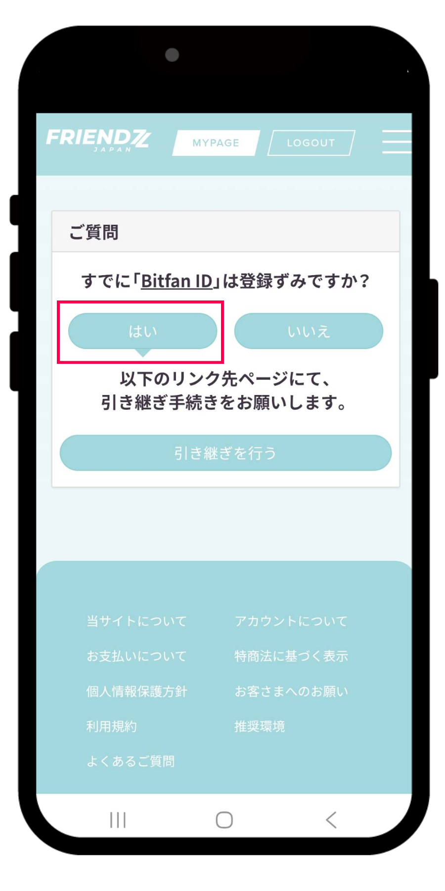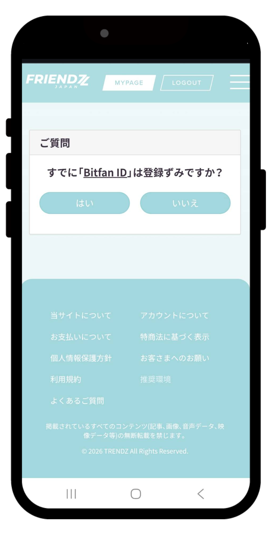 ※別サービスなどですでに「Bitfan ID」をお持ちの方は、「はい」とご回答ください。