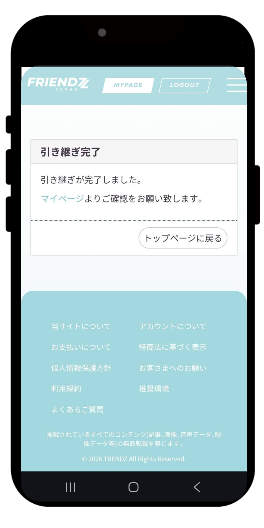 2. Bitfan ID取得後、マイページの「引き継ぎ手続きをする」ボタンを押してください。