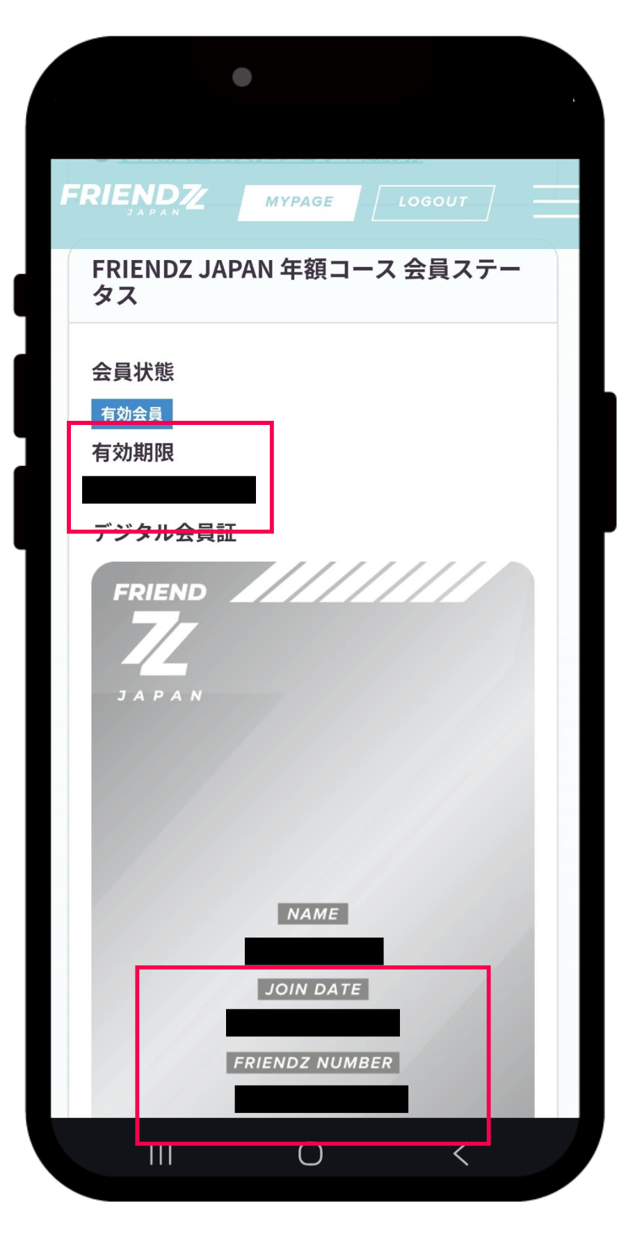 マイページで、①有効期限 ②入会日 ③会員番号 が正しく引き継がれていることをご確認ください。